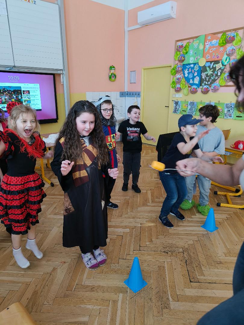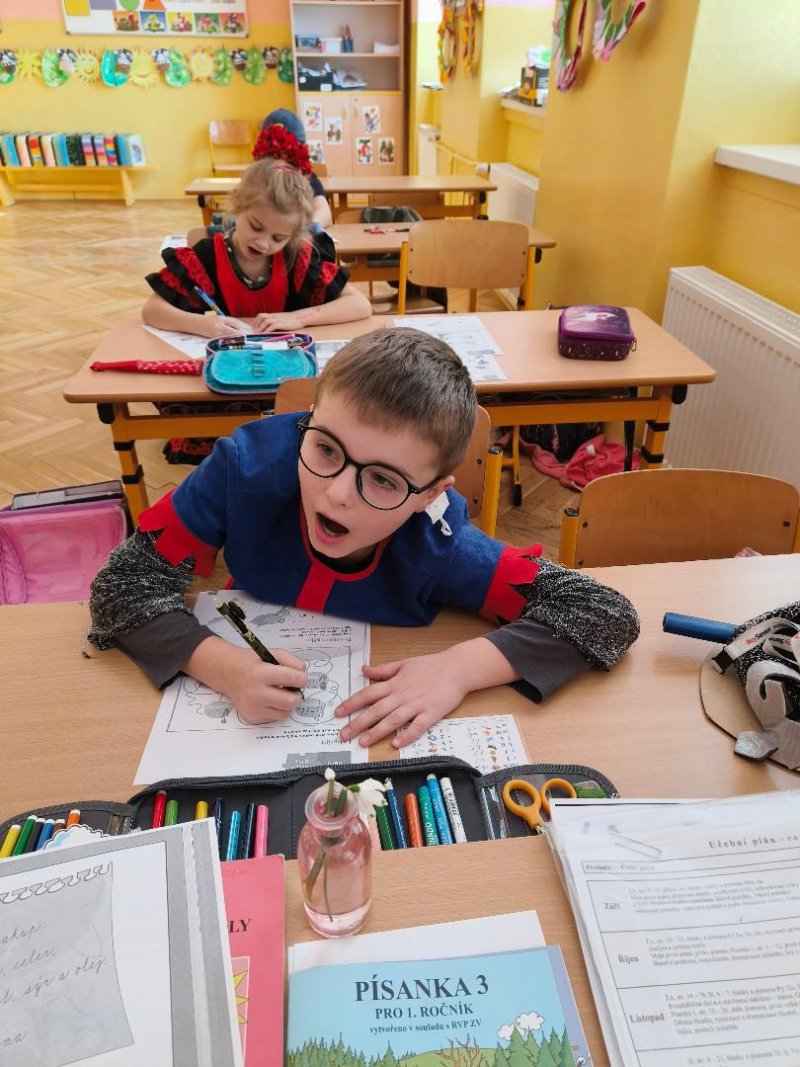 V pátek 27.2.2026 proběhl v 1. třídě karneval. Místo klasického vyučování plnily děti úkoly zábavnou formou her.