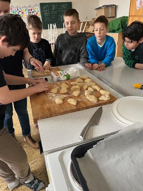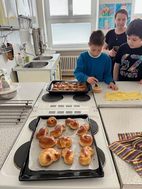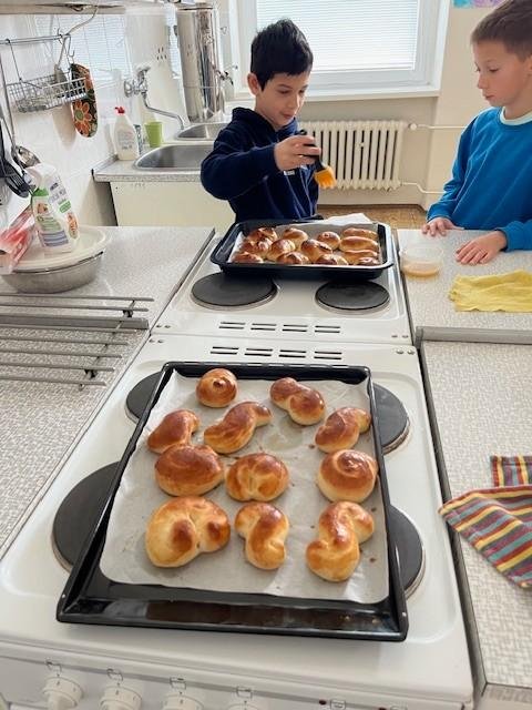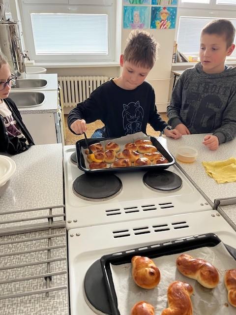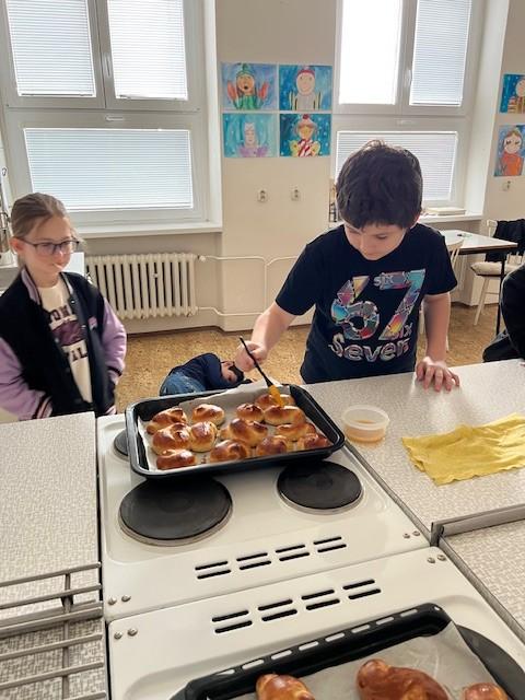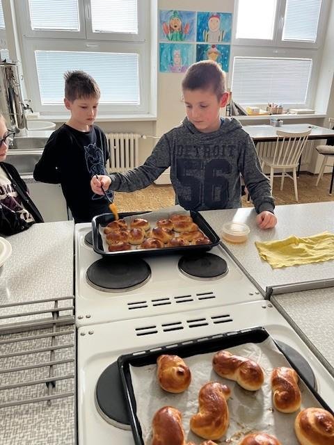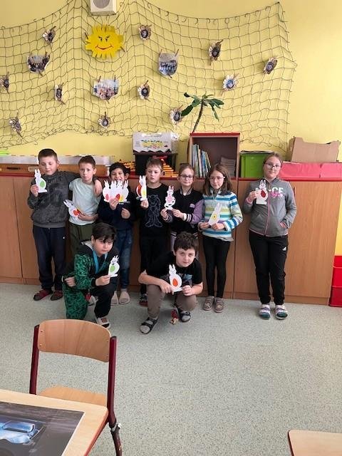 Jako děti v jiných třídách, také naše třída se připravovala na nadcházející svátky jara. Vytvořili jsme výzdobu u vchodu do školních šaten, vyrobili si nějaké ozdoby domů a dnes v AJ jsme tvořili Velikonoční přání, další hodiny patřily Velikonočním zvykům - povídání, pečení jidášů, zhlédnutí pořadu o svátcích na ČT - edu.