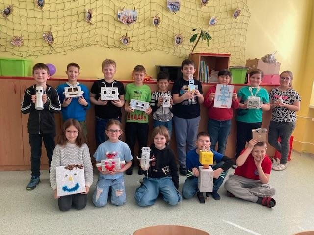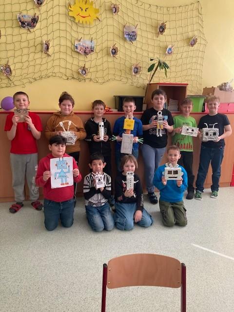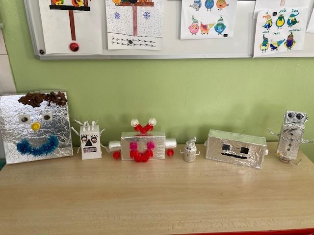 V angličtině jsme dostali domácí úkol: vyrobit robota. Moc se nám povedli.